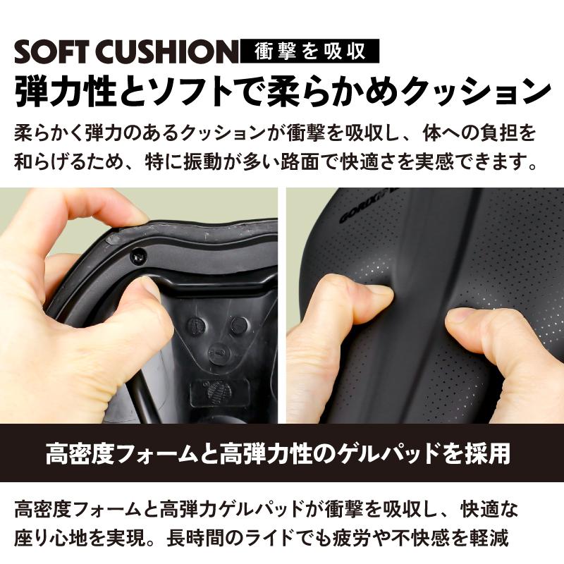 また高弾力性ゲルパッドは優れた衝撃吸収性を持ち、路面からの振動や衝撃を効果的に緩和します。