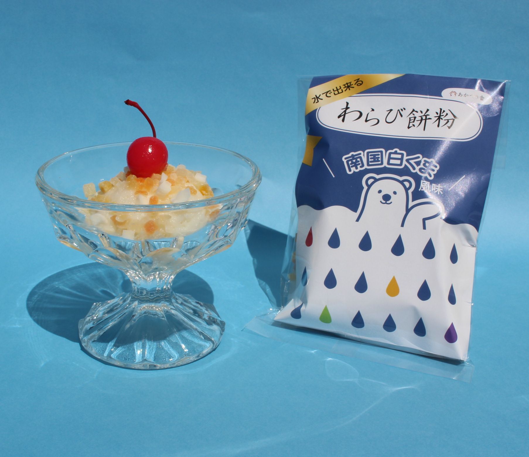 鹿児島のご当地スイーツ「南国白くま」の味わいを、ぷるぷる&もっちもち食感のわらび餅で再現した新商品、「水で出来るわらび餅粉 南国白くま風味」を、2025年4月15日(火)より販売開始いたします。