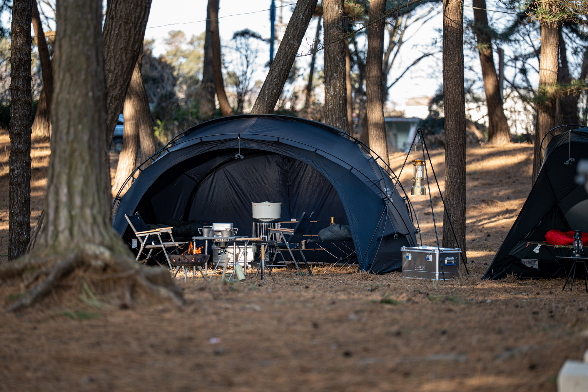ギア好きの間で愛用者も多いブラックカラー。他の何にも変え難い唯一無二のカラーリングは、オリジナリティを追求するキャンプスタイルの方に最適です。特にブラックカラーが本領を発揮するのは日が暮れてから。焚き火の向こう側に浮かび上がる漆黒のテントは、多くのキャンパーを魅了します。