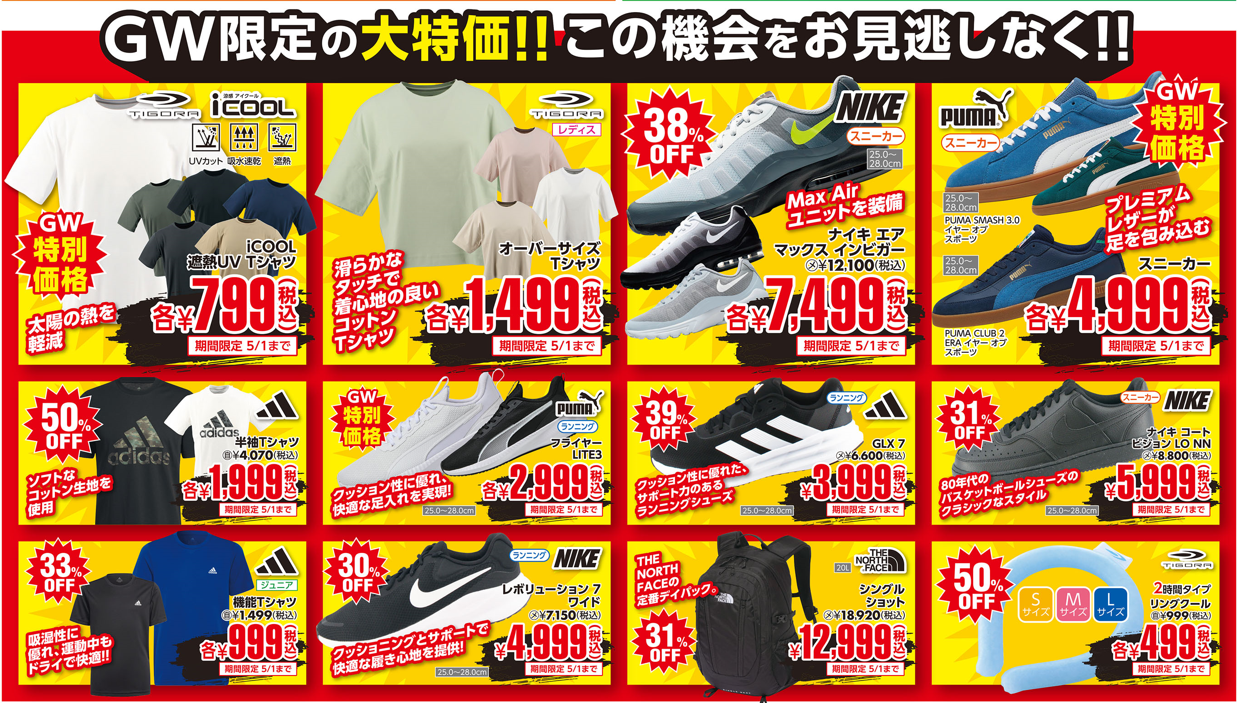 5月2日(金)からの2弾セールでもGW限定の超目玉品が大集合。ぜひご期待ください。