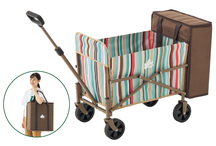 バッグに入れてスマートな持ち運びが可能で、収納・組立てラクラクなキャリーカート「丸洗いバッグインキャリーカート(ブルーストライプ)」をアウトドアシーンでぜひご活用ください。