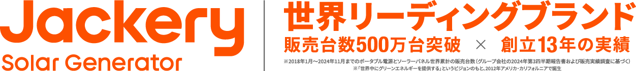 2012年、アメリカ・カリフォルニア。「グリーンエネルギーをあらゆる⼈に、あらゆる場所で提供する」という、壮⼤なビジョンのもと、私たちJackery は、誕⽣しました。2016 年には、ブランド初となるアウトドア⽤ポータブル電源を発売。さらにその2 年後には、ブランド初のポータブルソーラーパネルを開発しました。