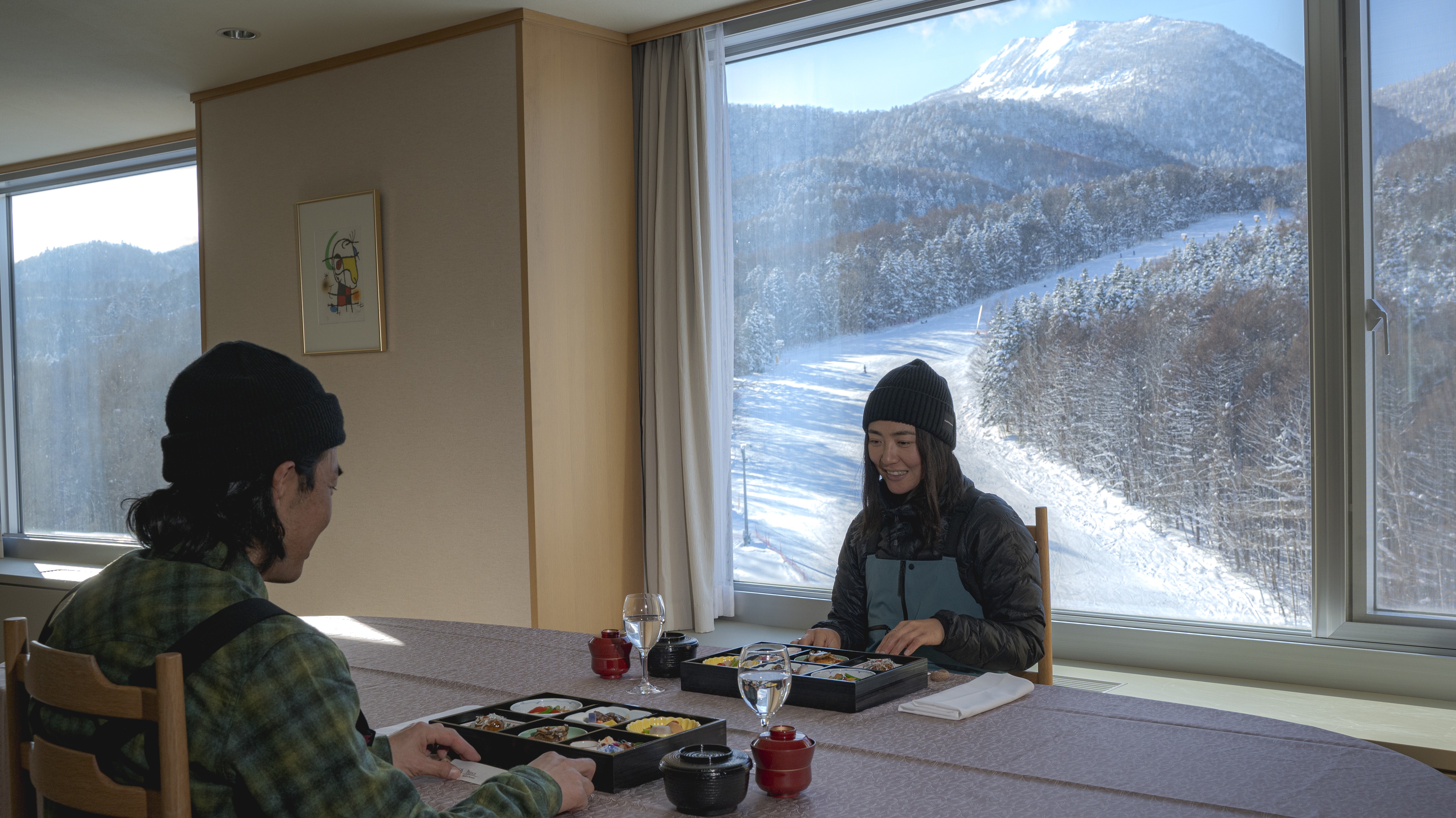 ● ゲレンデビューのホテル特別室で料理長監修「ファーストトラック弁当」をご賞味いただきます。