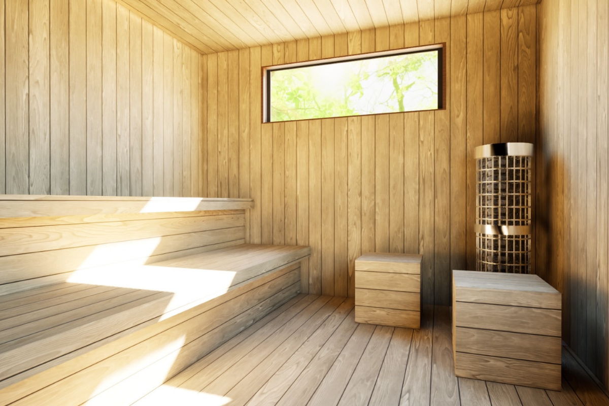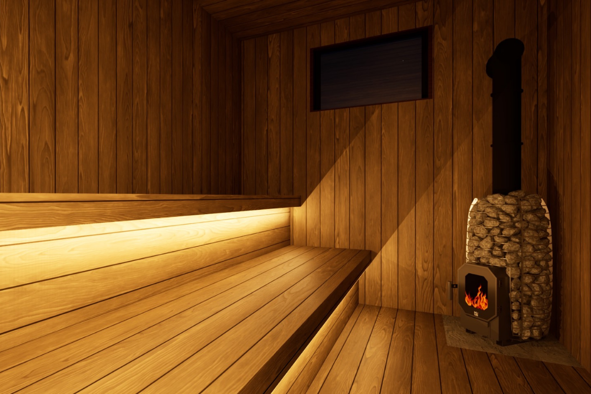 HUUM社製の最新型電気ストーブを設置し、温度センサーによる徹底した温度管理が可能。窓から自然光や外の景色を楽しめる開放的な設計で、約15名がゆったり利用できます。