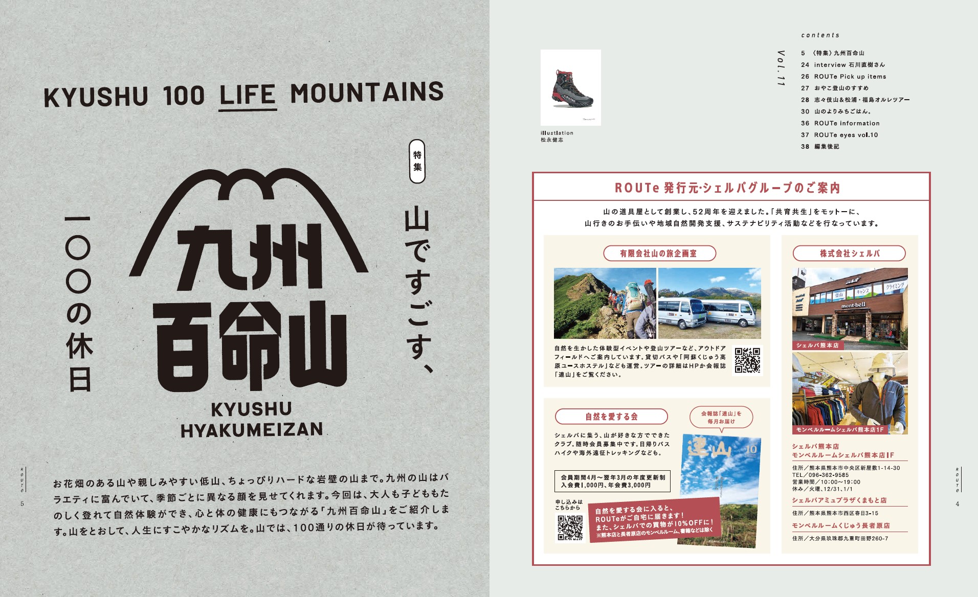 シェルパ(山の旅企画室)が発行している、ROUTe vol.11フリーマガジンにて、今回のデジタルスタンプラリー対象の6座を紹介しています。