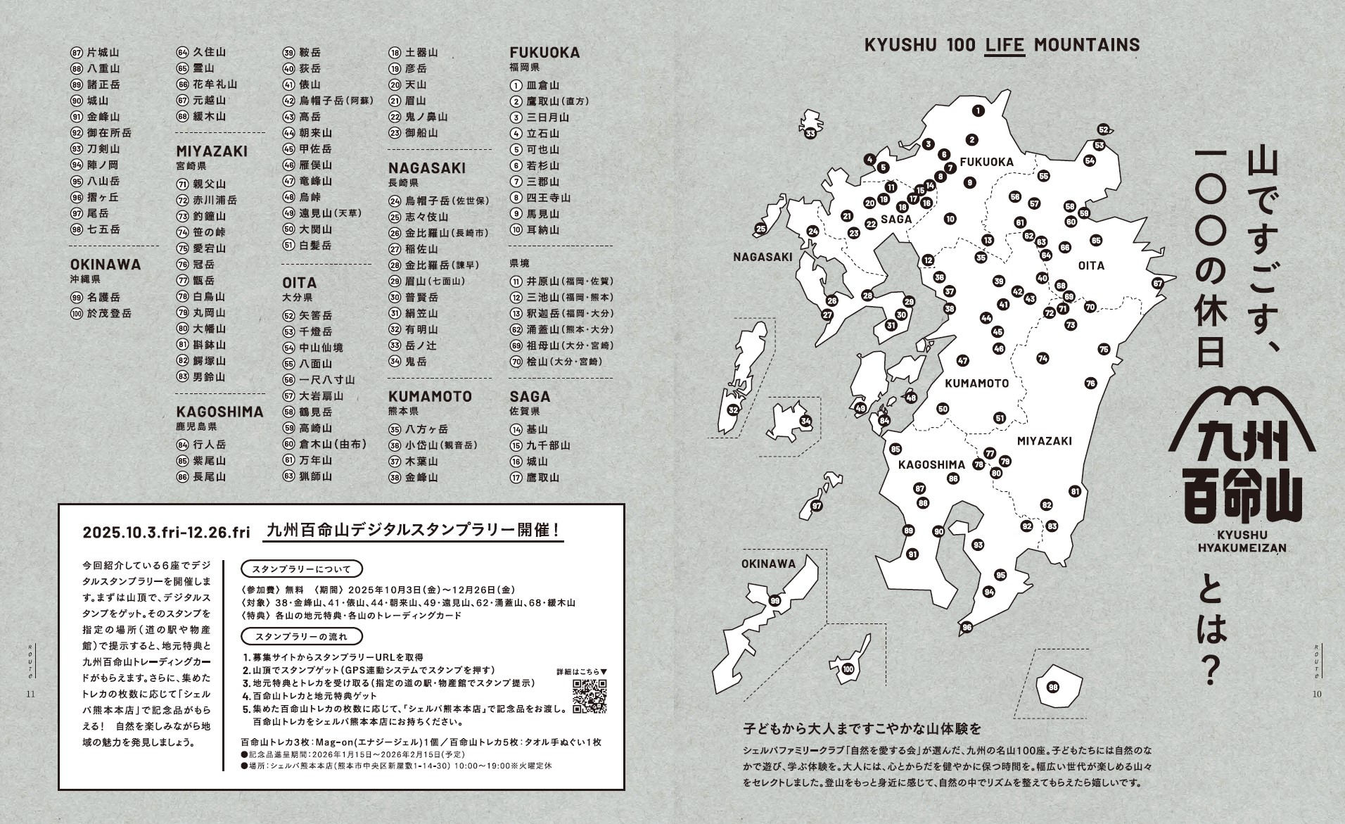 1座ごとに地域特典と九州百命山トレカをゲット。3座以上で記念品もプレゼント!