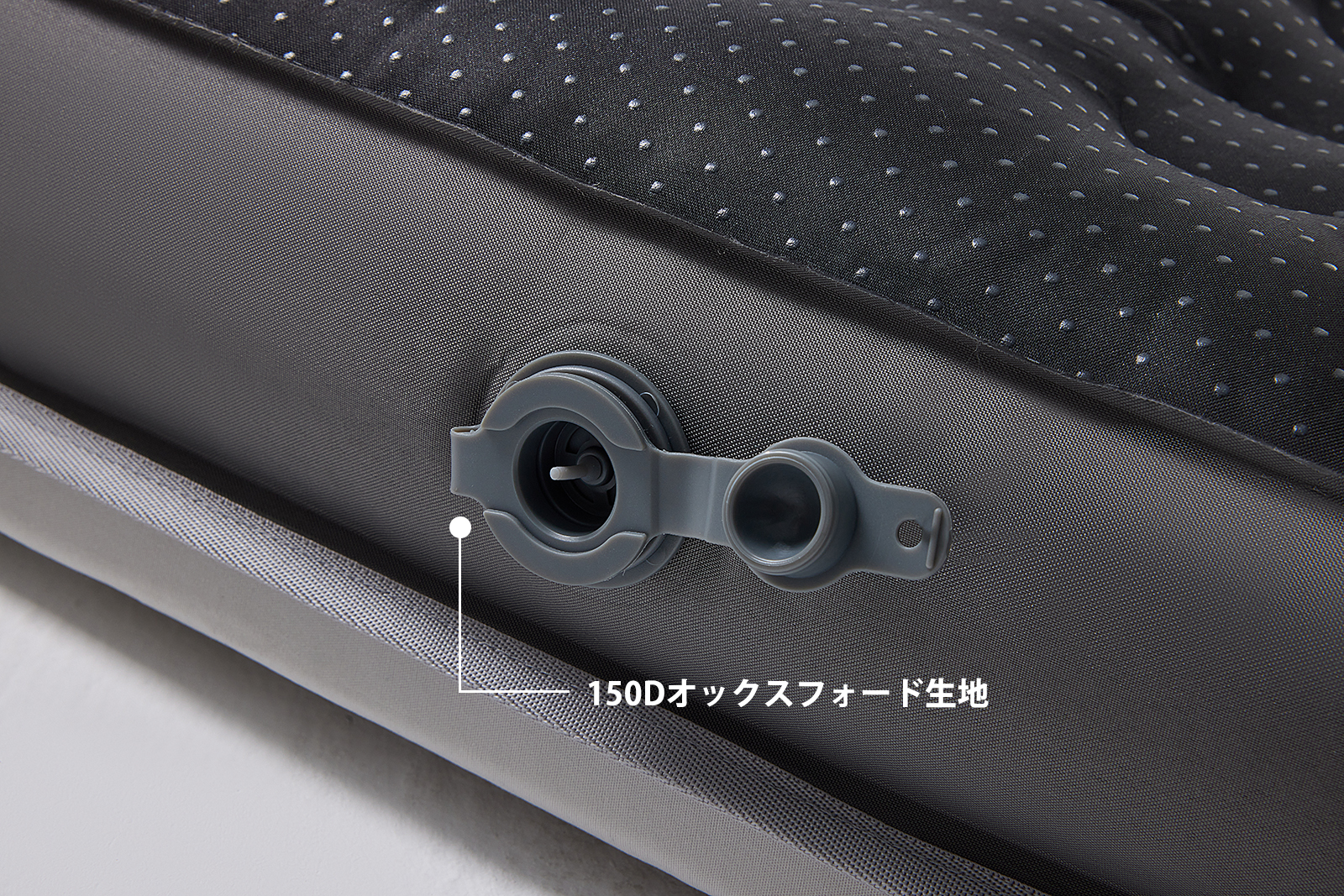 側面には150Dオックスフォード生地にPVCコーティングを施し、横向き寝時にかかる圧力をしっかり支えます。