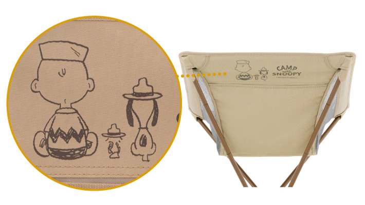 スヌーピーやウッドストックたちが自然の中で冒険し、アウトドアを楽しんでいるようなデザインが描かれており、LOGOSらしさあふれるアートを取り入れたオリジナルデザイン。フロントにはスヌーピーとウッドストックの刺繍がワンポイントになっており、背面にはチャーリー・ブラウンとスヌーピー、ウッドストックの後ろ姿が描かれている。