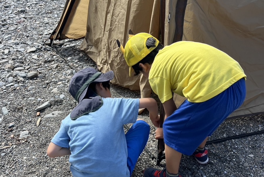 テントの設営体験から火おこし体験、温泉ソムリエの資格を有するスタッフによる温泉講習、温泉水を使用したキャンプ料理など親子で楽しめる内容です。