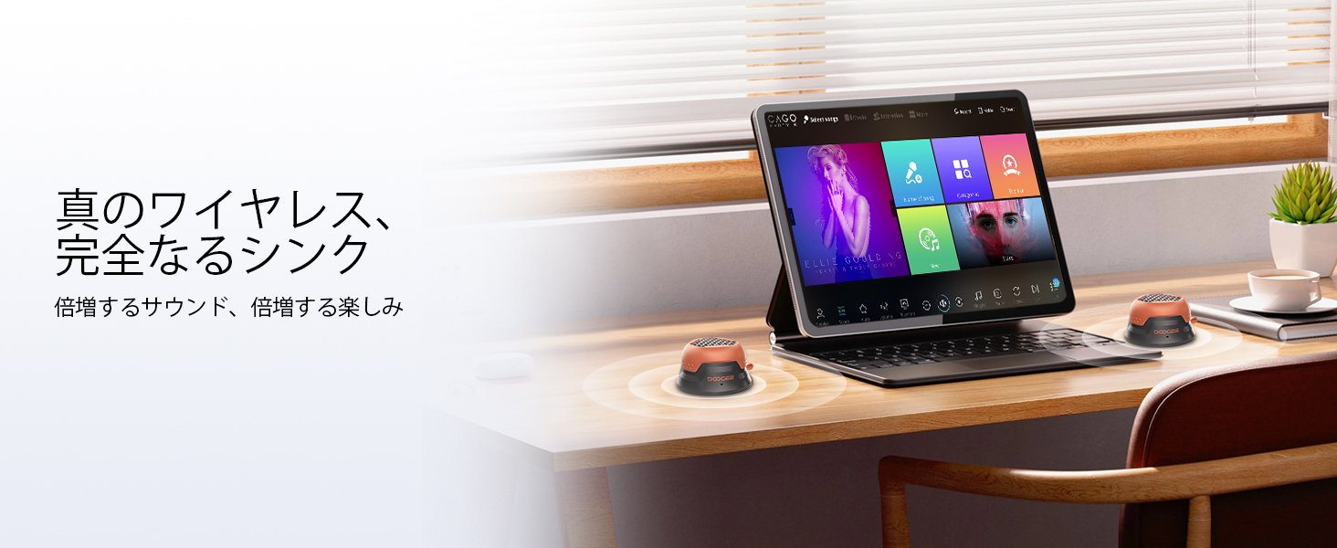 ケーブル不要で接続もスムーズ、タブレットスタンドとしても機能し、省スペースでスタイリッシュな音楽環境を構築可能。