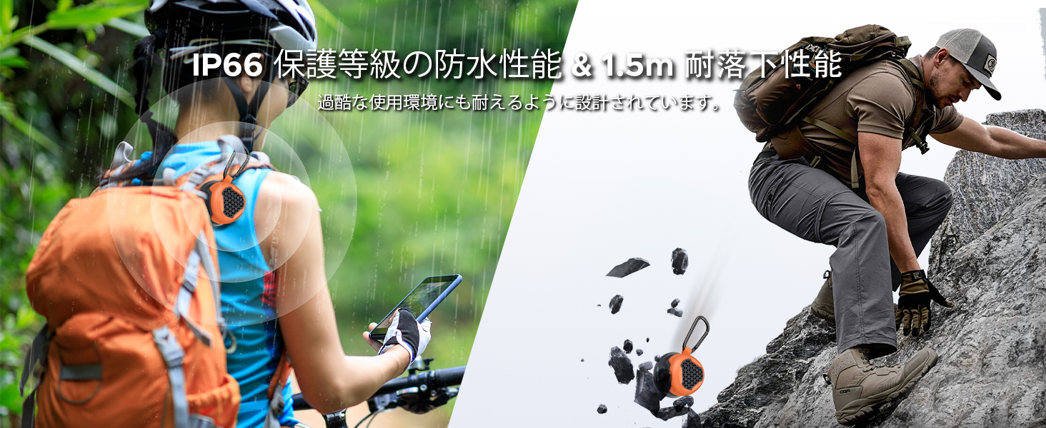 IP66防水+耐衝撃 ― どんな場所でも、音楽と一緒に