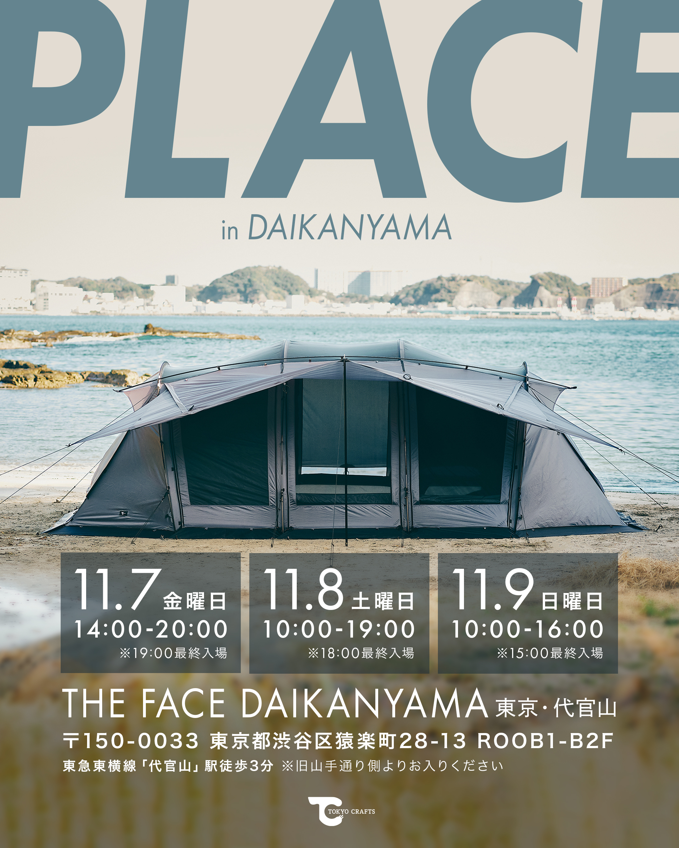 キャンプブランドTOKYO CRAFTS(トウキョウクラフト)新作展示&販売イベント「PLACE in DAIKANYAMA」開催決定!