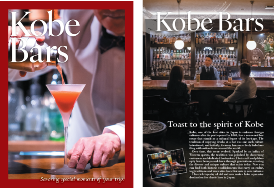 神戸市では、2025年上半期で外国人の延べ宿泊者数が63万人泊と前年同期比40%の伸びを見せるとともに、外国籍客船の神戸港入港数が過去最多を更新するなど、外国人の市内観光需要が高まっています。そのような状況下、今年4月から神戸空港の国際線チャーター便の就航を契機とし、外国人観光客向けに夜の楽しみ方として港町神戸の文化である、バーを紹介する英語パンフレットを作成しました。
