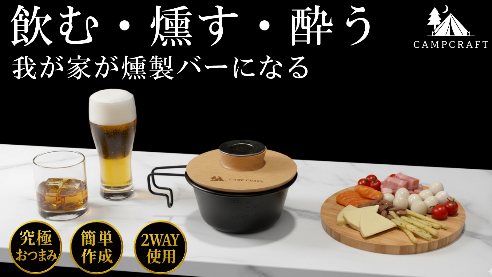 いつもの晩酌が高級バーの味に、おつまみもお酒も、この1台で色んな種類の燻製が味わえる。2WAY仕様の燻製器が、Makuakeにて2025年10月24日から限定価格で先行販売開始します。