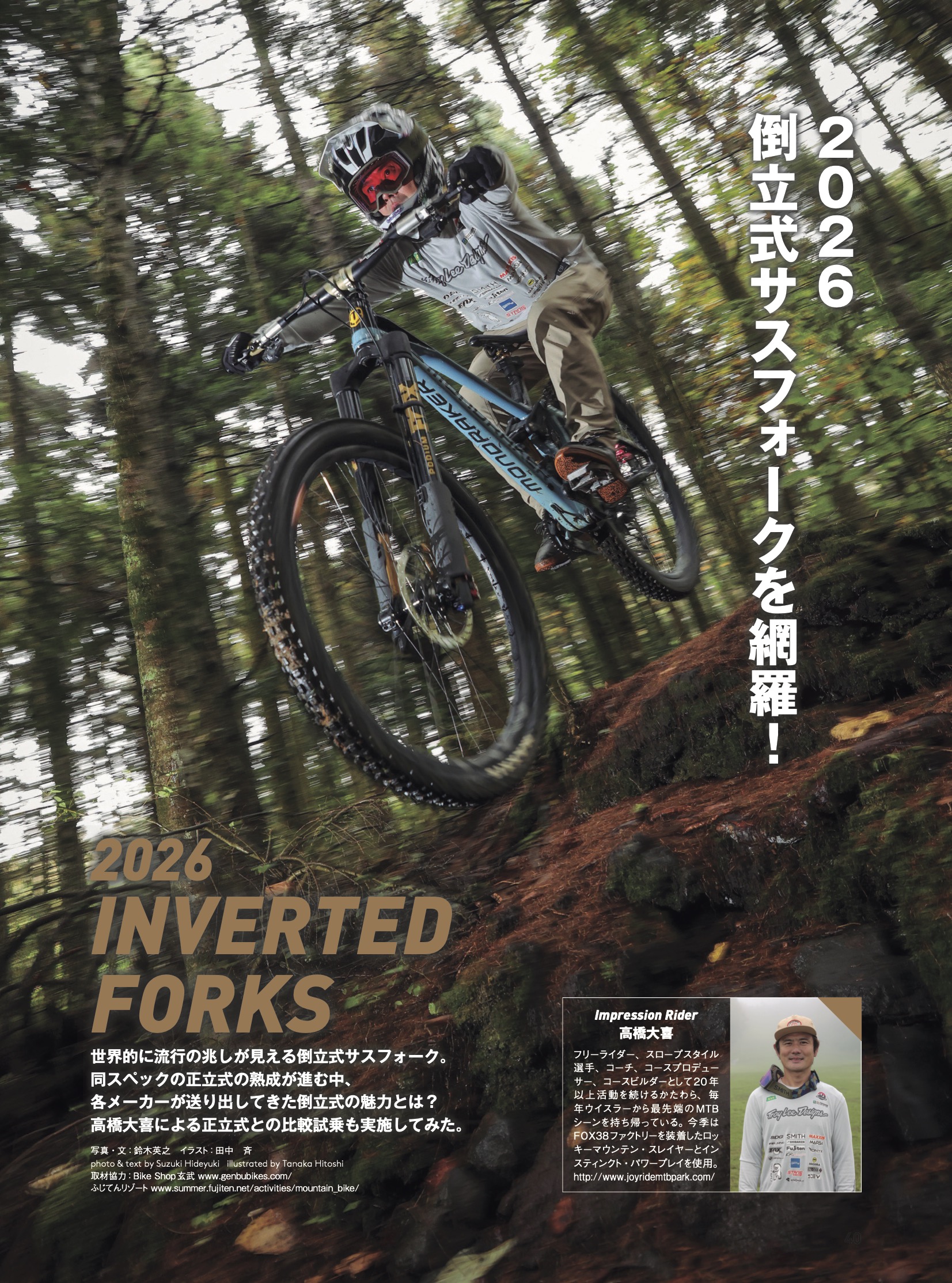 世界的に流行の兆しが見える倒立式サスフォーク。同スペックの正立式の熟成が進む中、各メーカーが送り出してきた倒立式の魅力とは? プロライダーによる正立式との比較試乗も実施しました。