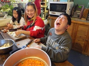 大晦日にこどもたち全員でおせち料理を作り、お餅をつき、おそばを打って年を越す準備をします。夕食はパーティをして大盛り上がり。夜は近くのお寺に除夜の鐘をつきに行き、神社に初詣に行くことも。