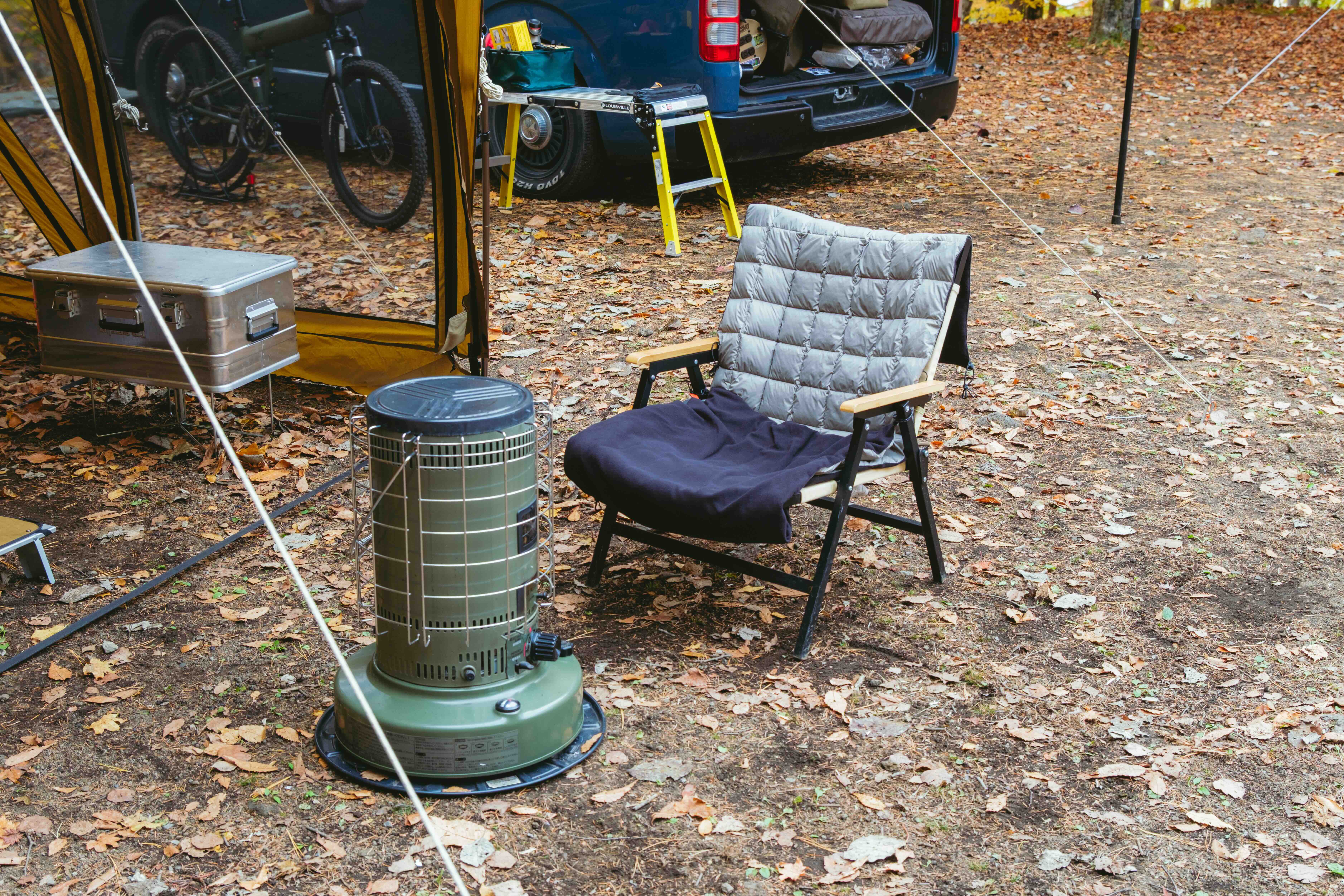 座面で折り返して利用すると、ちょうどよく収まります。背面やお尻の冷気をシャットダウンして、チェアの保温力を底上げします。