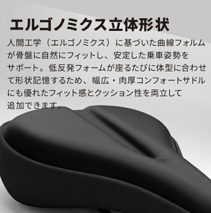 幅広・肉厚コンフォートサドルにも優れたフィット感とクッション性を両立して追加できます。