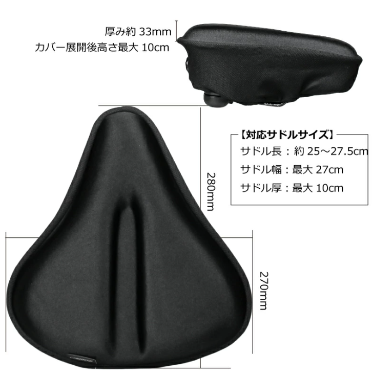 サドル長 : 約25~27.5cm/サドル幅:最大27cm/サドル厚:最大10cm