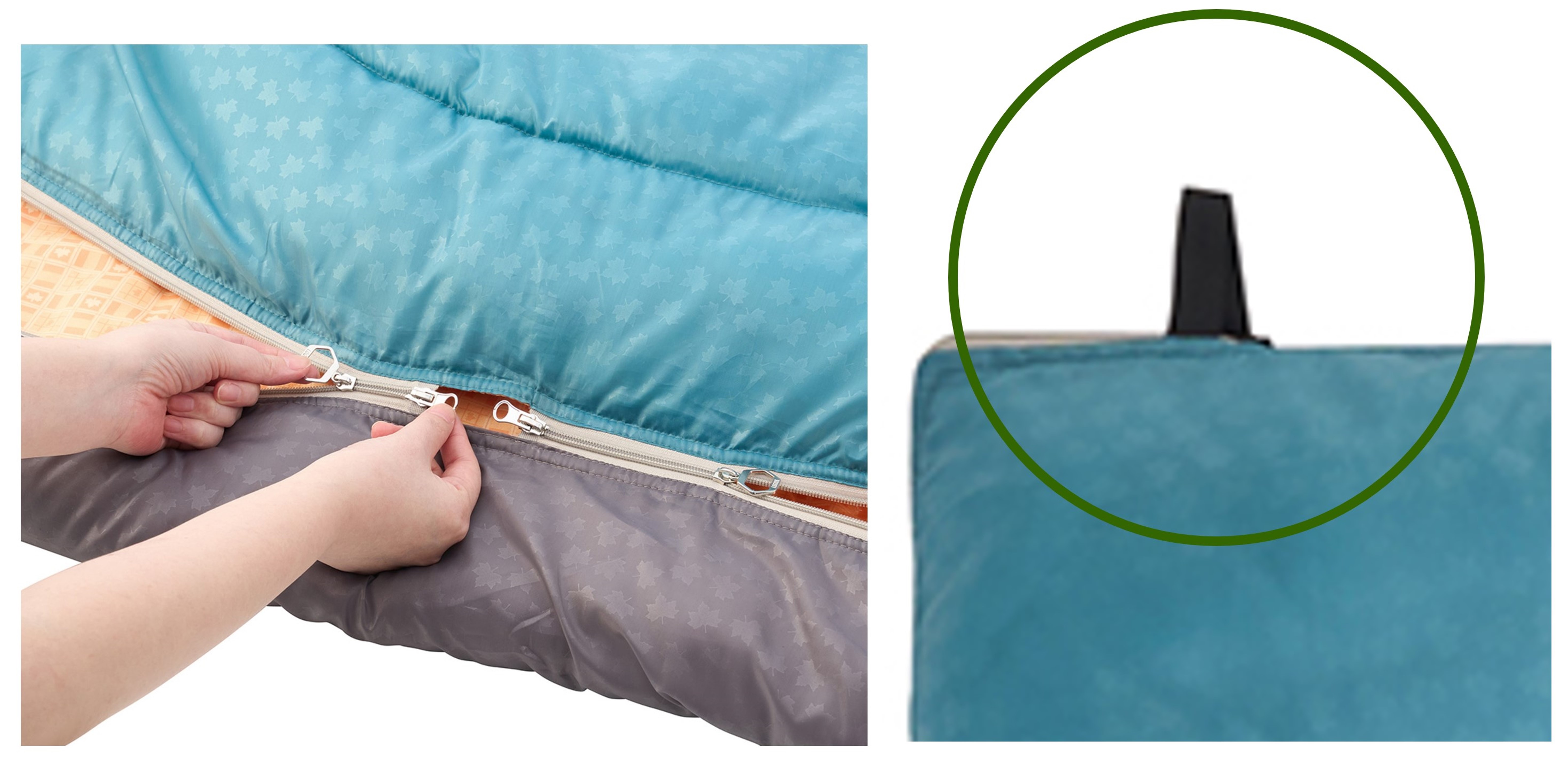 また、寝袋の内側と外側どちらからでも開閉ができる「ダブルフェイスジップトップ」と、フレキシブルな温度調節が可能な「ダブルファスナー」を採用しています。さらに、大型の洗濯機で丸洗いも可能なので、いつでも快適で清潔な睡眠を実現します。陰干しの際に便利な「ハンガーループ」付きです。
