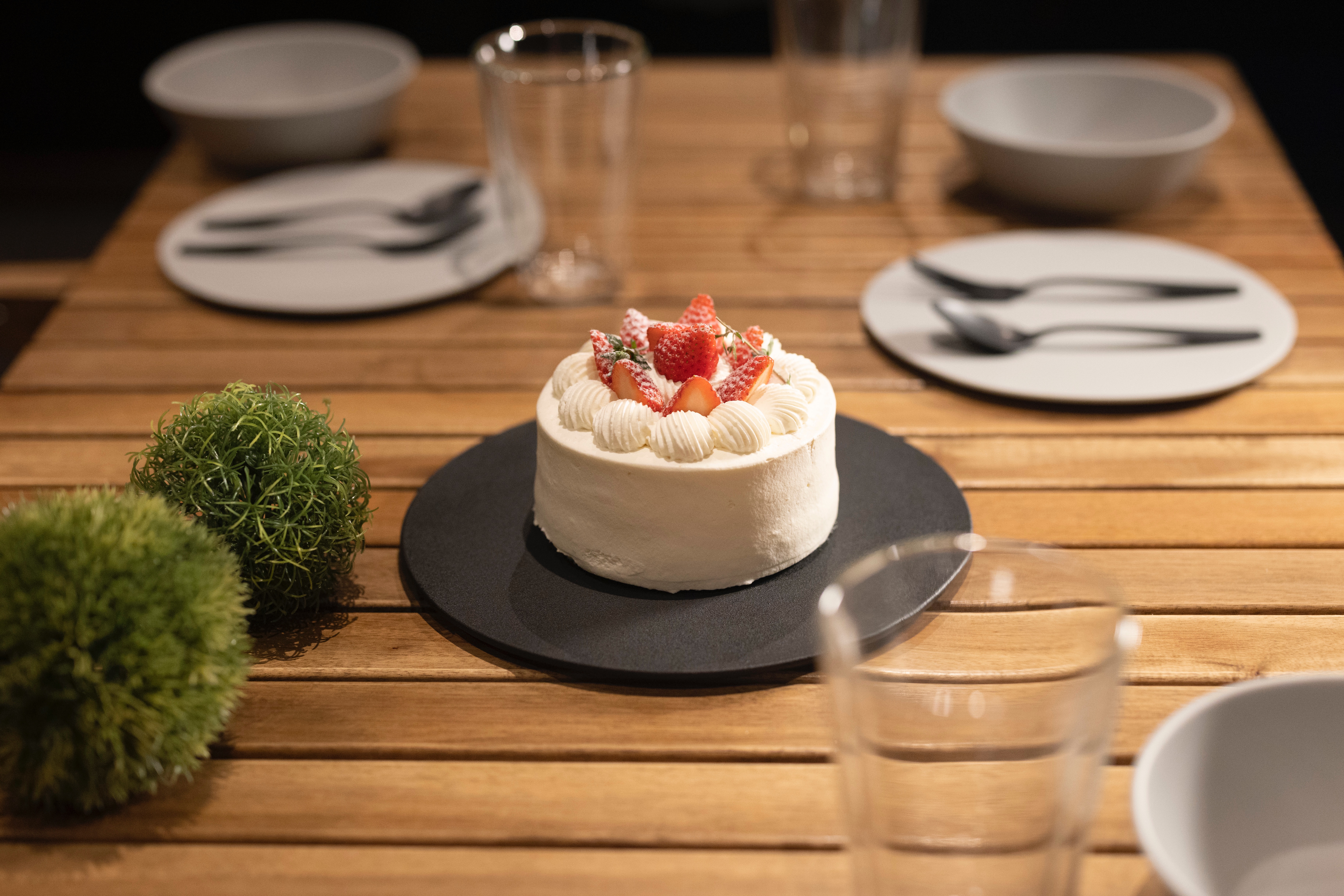 • 特典:テント内はバルーンデコレーションで彩り、選べるホールケーキ(プランオプションにて選択可)をご用意します。選べるホールケーキは地元ケーキ店「hanauta」との提携によりご提供します。