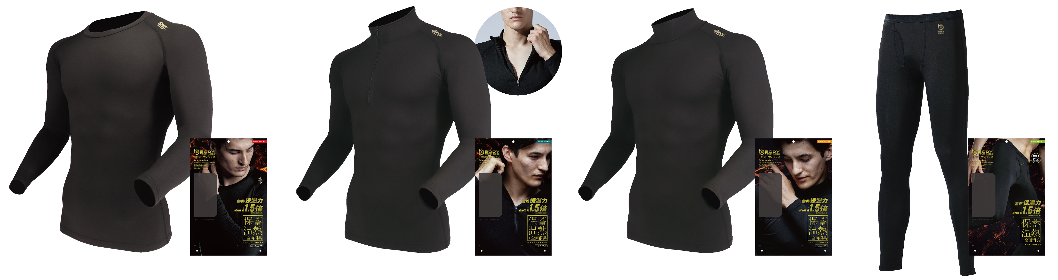 蓄熱インナーグローブと同じ蓄熱繊維を使用したインナーウェアや靴下のシリーズも拡大中︕
