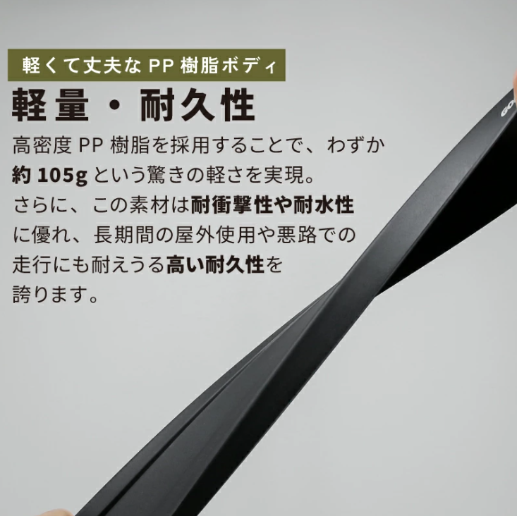 わずか約105g!軽くて丈夫なPP樹脂ボディ! 高密度ポリプロピレン(PP樹脂)素材を使用し、
