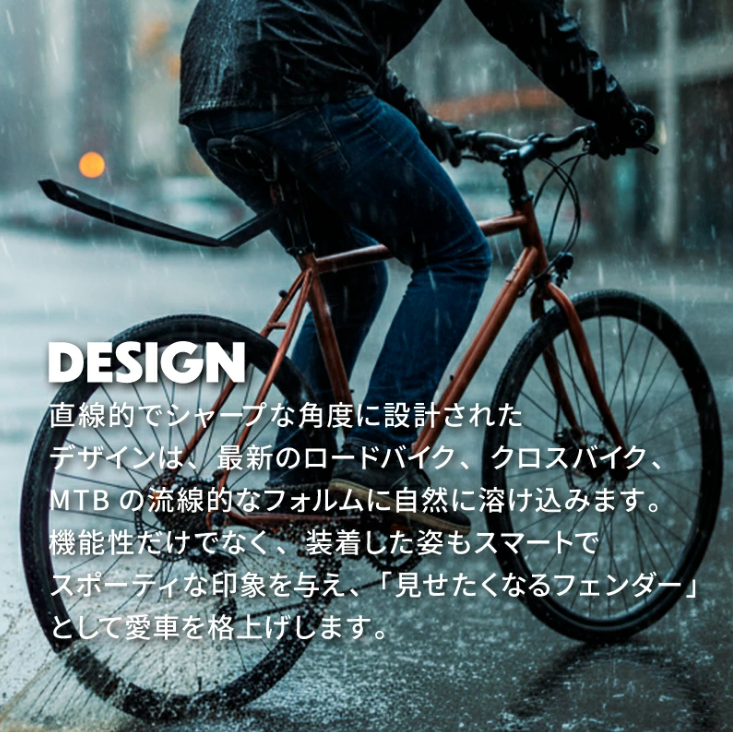 装着した姿もスマートに決まります。 「見せたくなるフェンダー」として、機能性だけでなく