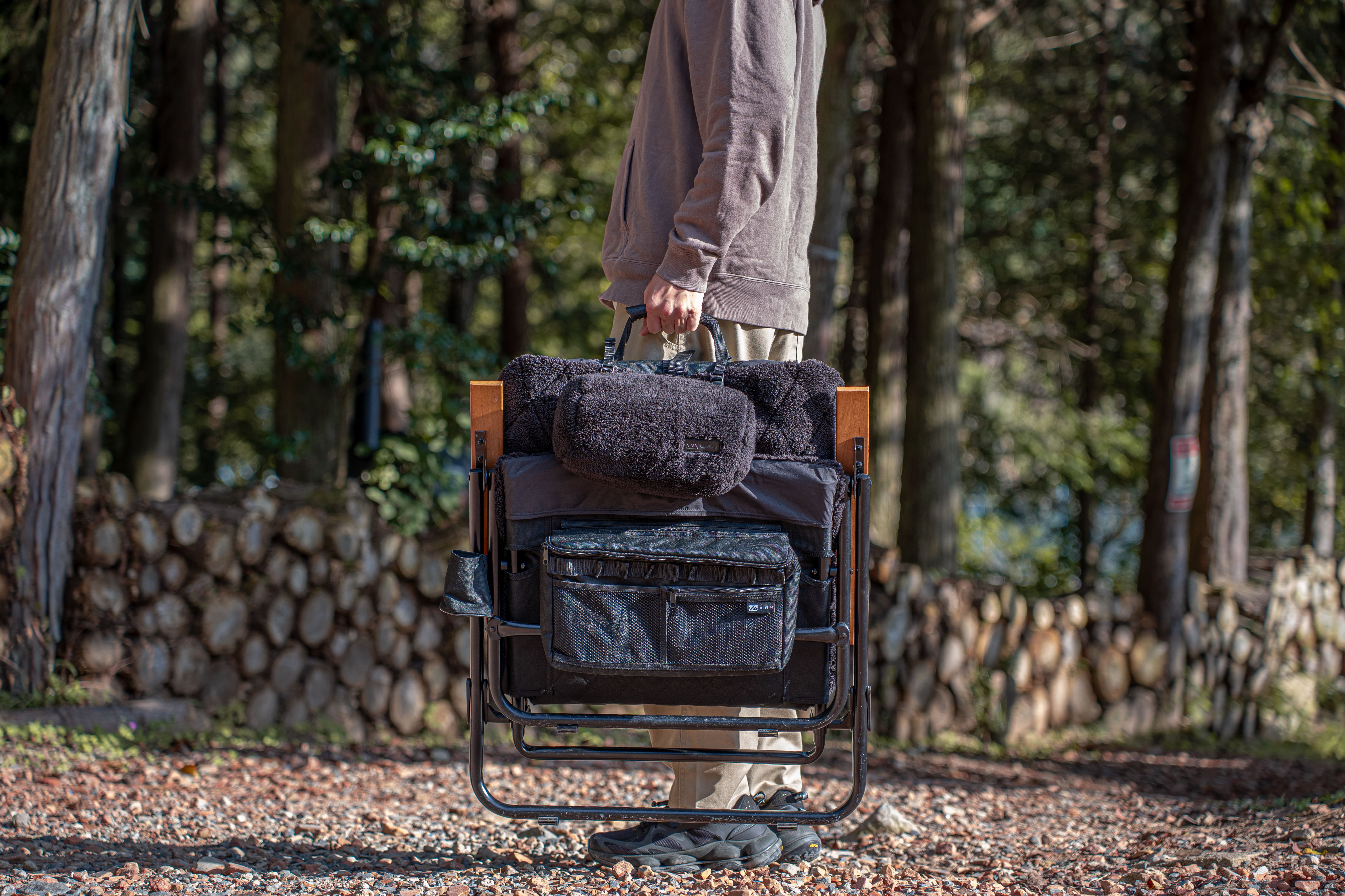 WAQリクライニングローチェアに最適なサイズですが、上部に引っ掛かりのあるチェアであれば装着可能。背面ポケットに被せてベルトで固定するだけなので、アウトドアチェアはもちろん、オフィスチェアの冷え対策にも活用できます。