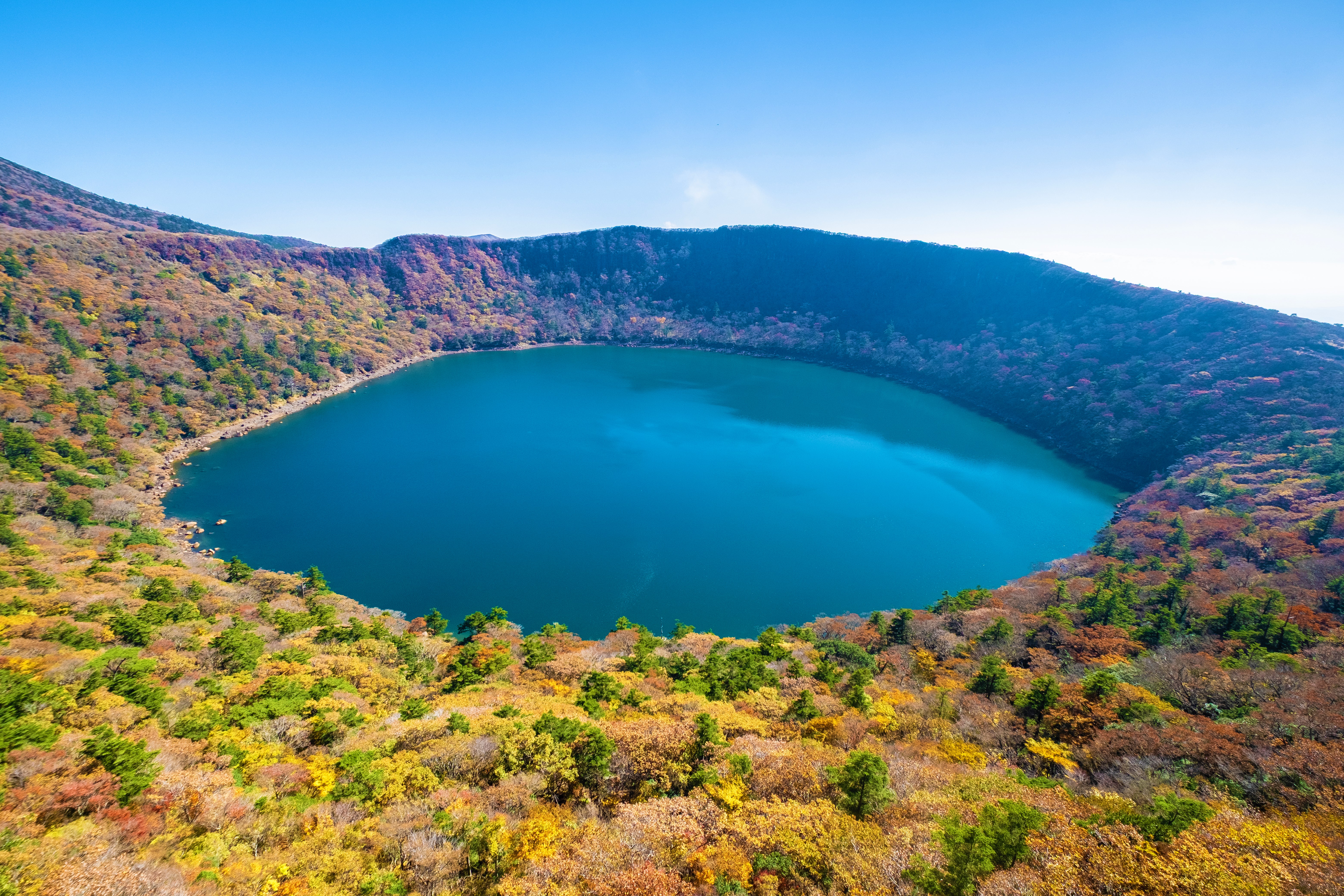 湖の周囲を1時間30分ほどで一周できる遊歩道もあり、紅葉と湖面のコントラストが特に美しい、霧島を代表する秋の絶景として人気です。