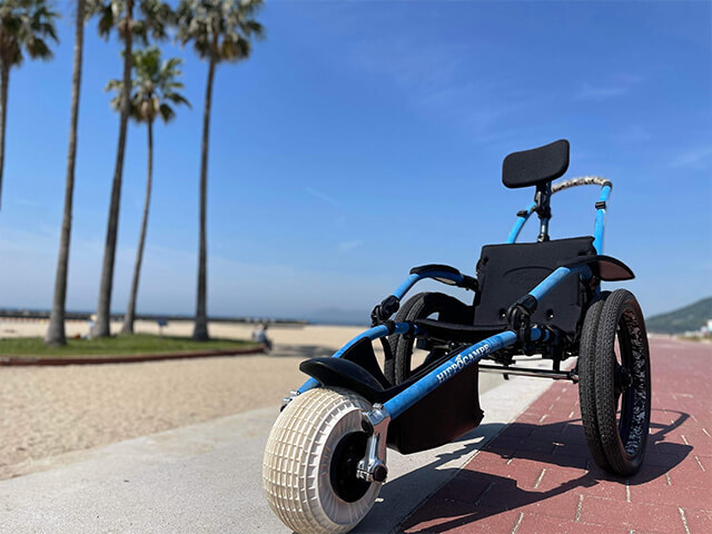 当日は、アウトドア用の車いすに加え、砂浜や不整地でも走行可能な特殊モビリティ「マウンテントライク」 などを展示・試乗体験いただけます。