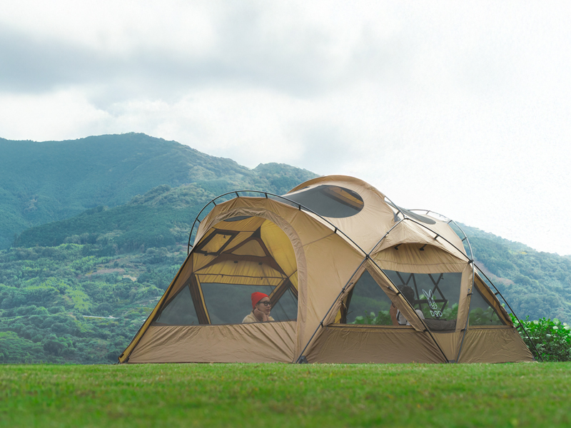透明窓オプションもDOD初の試み。幕内でぬくぬくと過ごしながら景色を楽しめるほか、雨の日でも閉塞感なくおこもりキャンプを満喫できます。